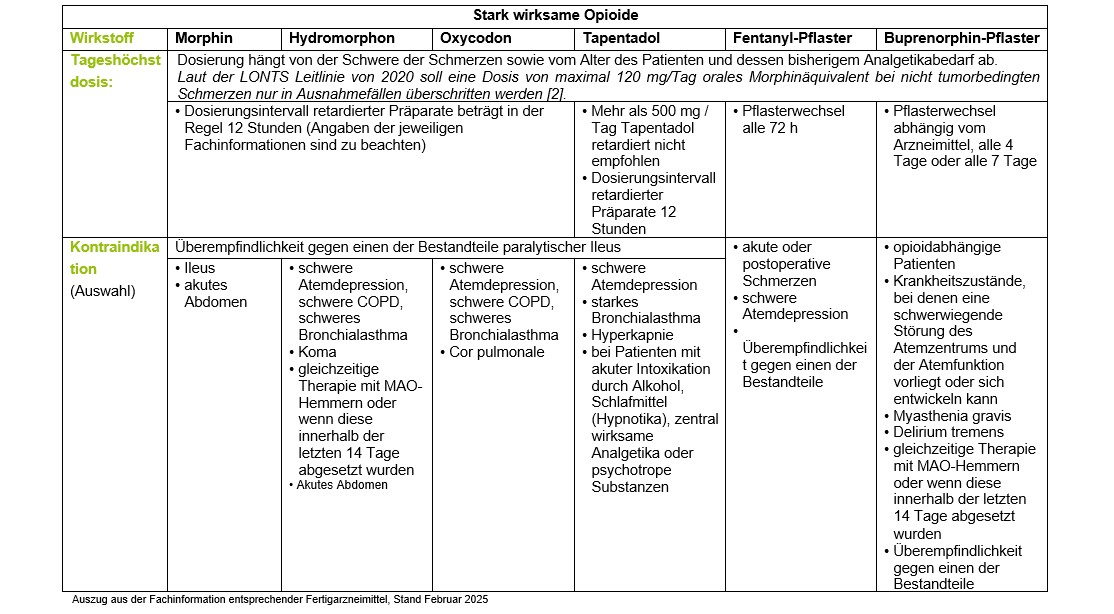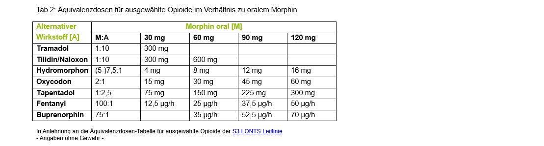 Eine Dosis von maximal 120 mg/Tag orales Morphinäquivalent soll bei nicht tumorbedingten Schmerzen nur in Ausnahmefällen überschritten werden [2].
